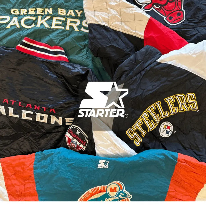 This mix of starter jacket nfl includes a unique selection of authentic jackets from some of the most iconic NFL teams. If you choose this pack, you’ll receive either 10 or 20 units in a variety of colors and sizes, making it an ideal choice for stores catering to sports fans and retro fashion enthusiasts.