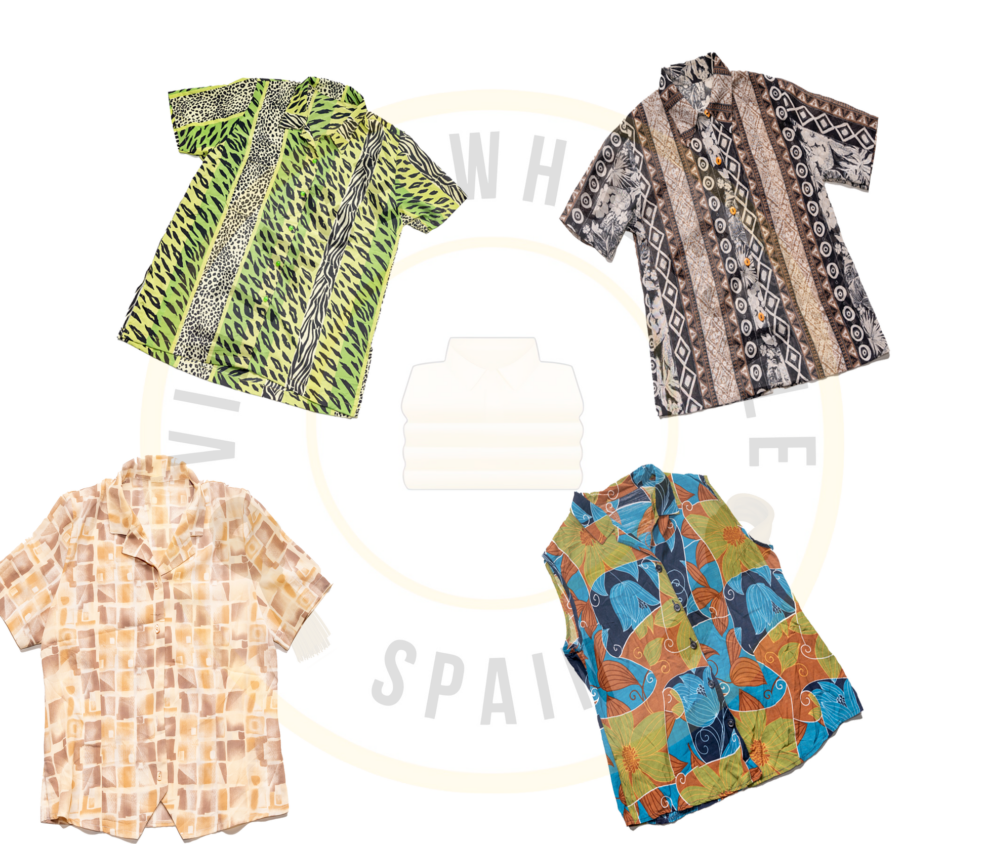 Our mix of short sleeve crazy blouses offers a curated selection of vibrant and eclectic styles from the 70s, 80s, 90s, and 00s. Available in wholesale packs of 20, 40, or 100 pieces, these blouses are perfect for retailers looking to stock eye-catching vintage fashion that appeals to bold and creative customers.