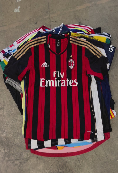 Each pack includes a diverse mix of football t-shirts. These t-shirts showcase iconic team designs and logos, making them ideal for football enthusiasts and vintage clothing collectors. Due to the high volume of clothing we process, some items may be incorrectly classified, meaning that a small number of counterfeit pieces may be included by human error. However, we strive to minimize this and ensure the best selection possible.