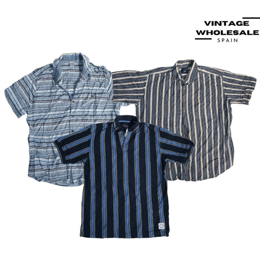 ストライプシャツ卸売り – 小売業者向けのプレミアムパック ストライプ半袖無地シャツミックスは、70年代、80年代、90年代、2000年代のヴィンテージスタイルを厳選したセレクションです。25枚または50枚単位の卸売りパックで、高品質でタイムレスなストライプデザインの衣料品をお探しの小売業者に...