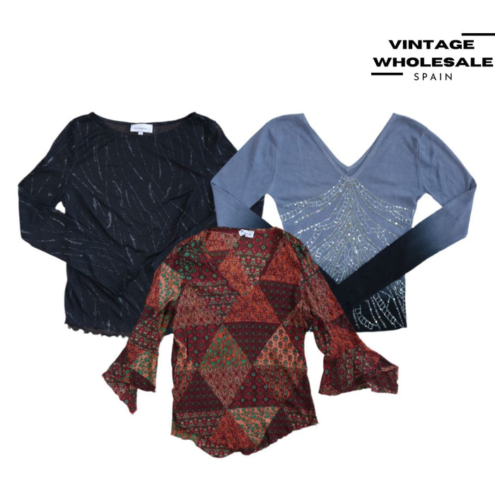 当社の長袖トップス Y2Kミックスは、2000年代初頭のスタイリッシュで軽量なアイテムを厳選したセレクションです。10kg、20kg、45kg、または100kg単位の卸売りパックがご利用可能で、レトロな魅力とモダンな魅力を兼ね備えたY2Kインスパイアのアパレルをお探しの小売業者や再販業者に最適です。